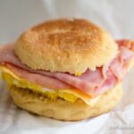 Place an egg square on the english muffin. You can double up on these if you want extra protein.(these are very easy to make with this Sheet Pan Scrambled Eggs Recipe)